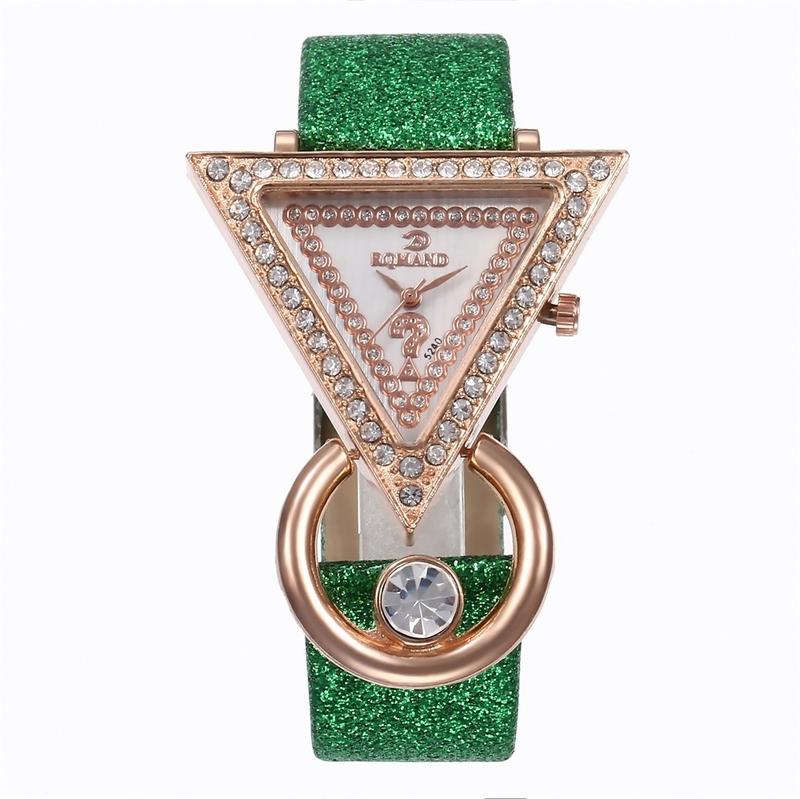 2025 New Inverted Triangle Diamond-Encrusted Matte Leather Women's Quartz Watch Casual Simple Unique Peacock Jewelry Set