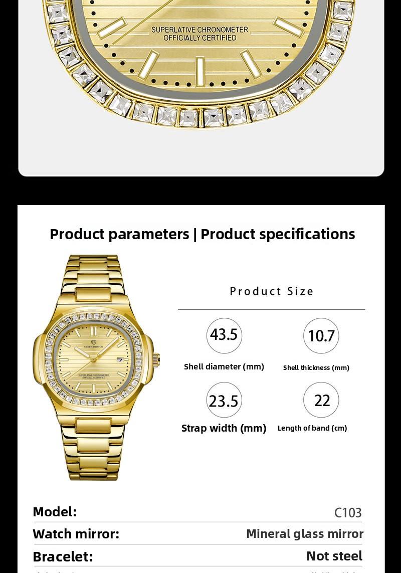 Hot Fashion Luxury Watch Calendar Men's Watch Full Diamond Waterproof Quartz Watch