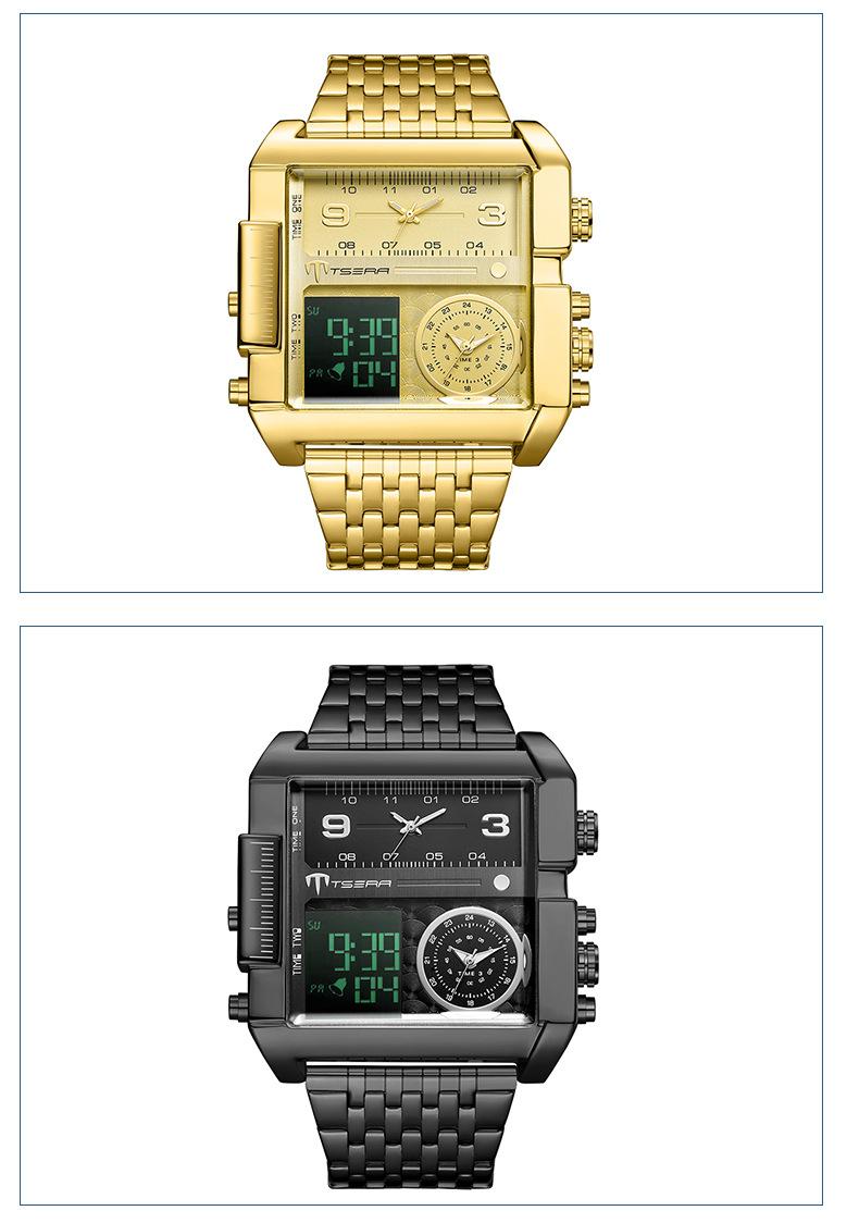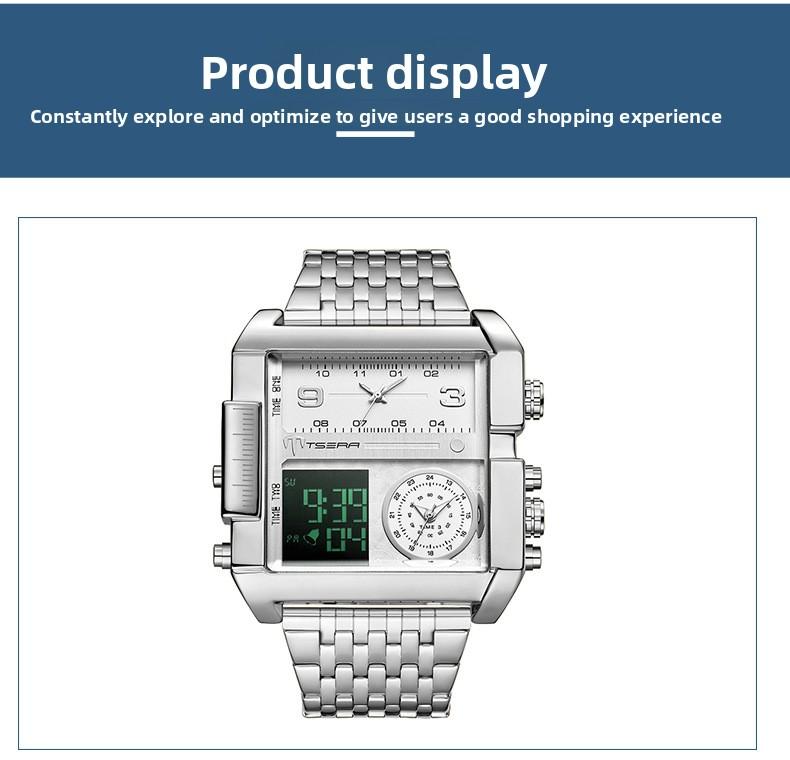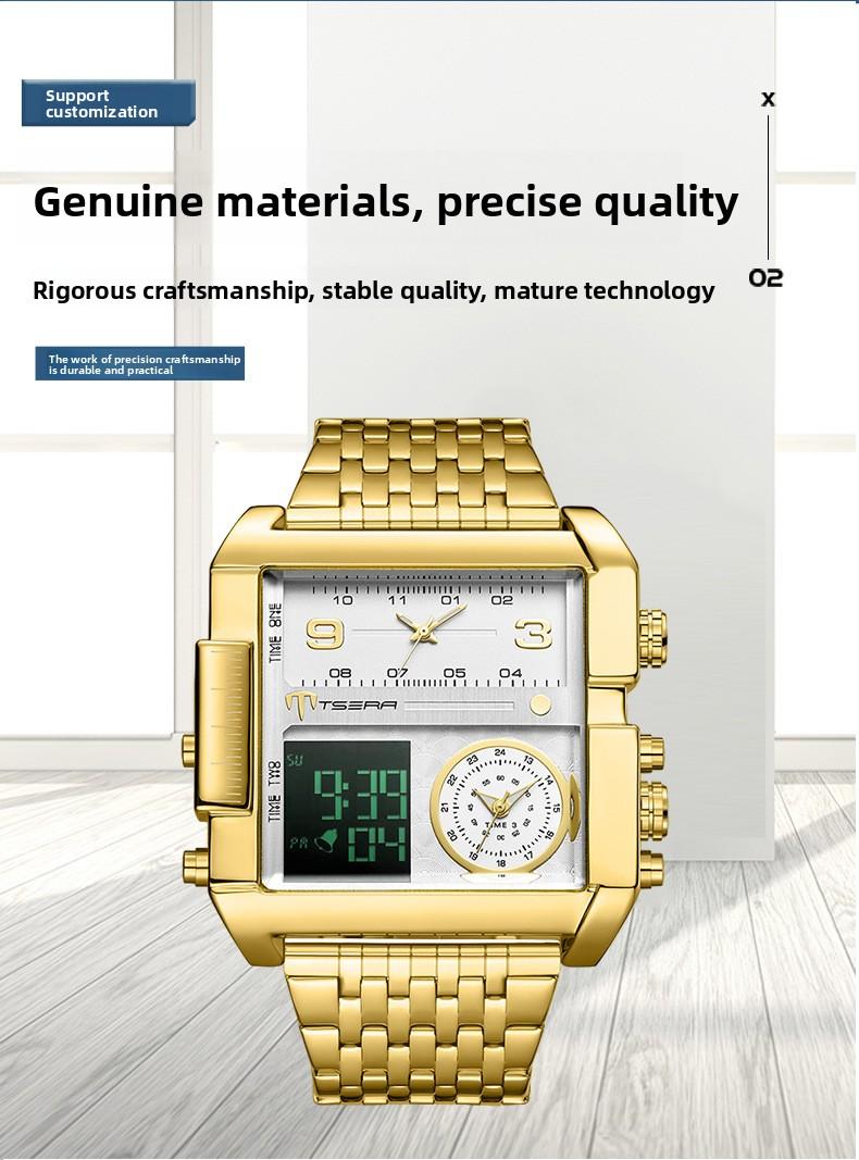 New Men's Business Square Large Dial Electronic Watch Fashionable High-end Multi-core Waterproof Calendar Watch
